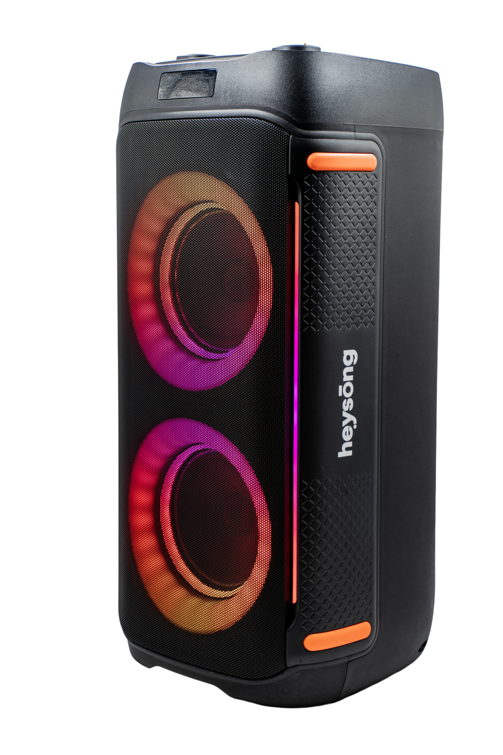 Powerful, modern, and built for every celebration. The Heysong Urban delivers high-impact sound through its dual front-firing drivers, enhanced by vibrant RGB lighting that syncs with your music. lts rugged design, ergonomic side grips, and top control panel make it easy to carry, customize, and enjoy anywhere. With wireless connectivity, deep bass, and long-lasting performance,