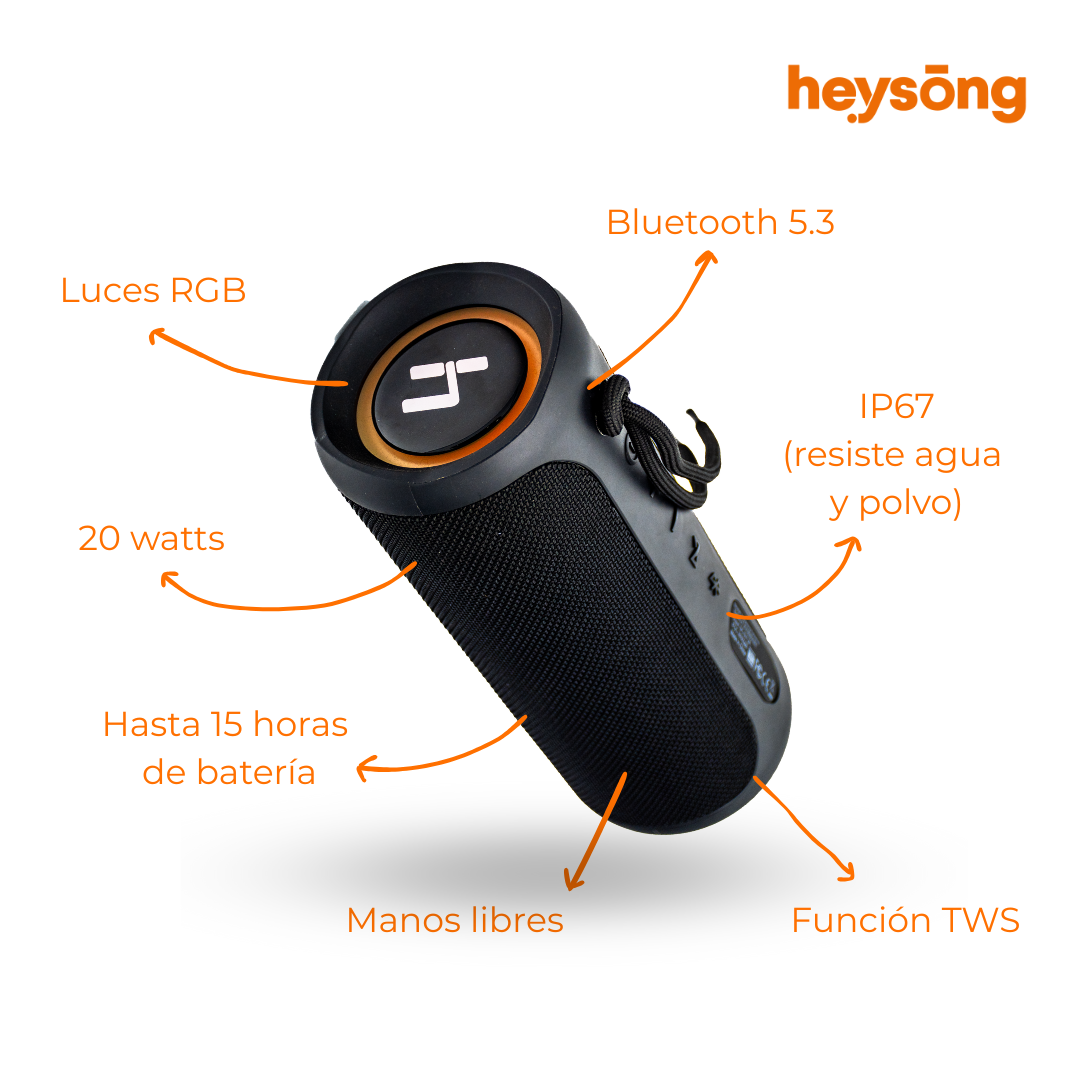 La Heysong Ultra es la bocina portátil definitiva para quienes buscan potencia, calidad de sonido y resistencia. Con su diseño robusto y tecnología Bluetooth avanzada, ofrece un sonido claro y potente, ideal para cualquier actividad al aire libre. Resistente al agua y al polvo, la Heysong Ultra es perfecta para aventuras, fiestas y uso diario. ¡Disfruta de un audio superior donde sea que vayas!