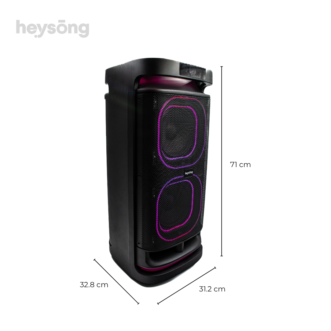 La Heysong Fiesta es la partybox de gran tamaño diseñada para encender cualquier celebración. Con un sonido potente, graves profundos y luces LED dinámicas, transforma cualquier espacio en una pista de baile. Su conectividad Bluetooth avanzada, resistencia al agua y batería de larga duración la hacen ideal para fiestas en interiores y exteriores. ¡Disfruta de música sin límites con la Heysong Fiesta!