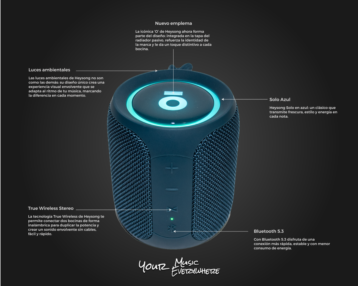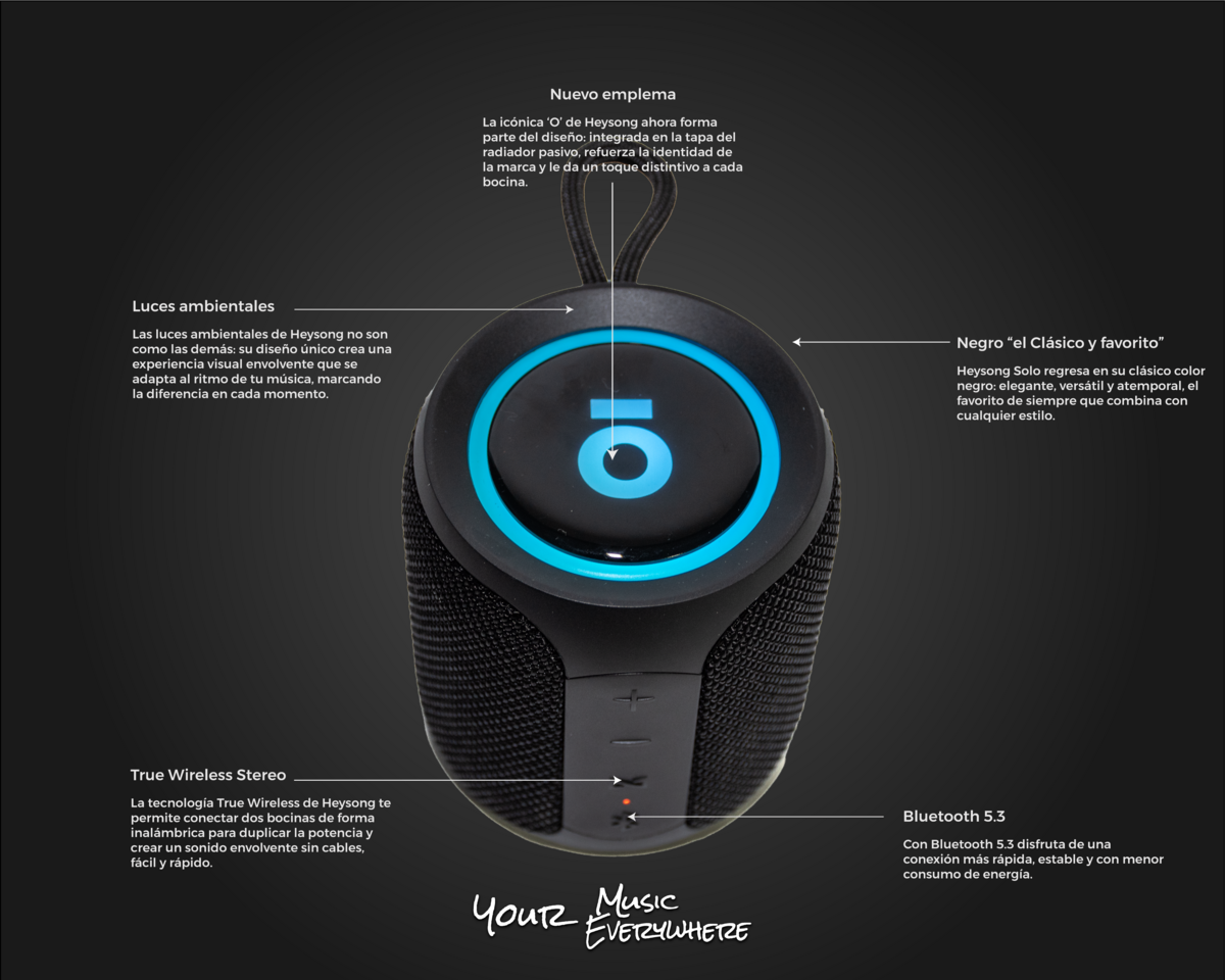 La Heysong Solo Classic combina un diseño elegante con un sonido potente y equilibrado. Con conectividad Bluetooth avanzada, batería de larga duración y certificación IPX7 a prueba de agua, es la bocina perfecta para disfrutar de tu música en cualquier lugar. Ideal para el hogar, la oficina o al aire libre, la Solo Classic ofrece una experiencia de audio envolvente con estilo y calidad inigualables. ¡Lleva tu música siempre contigo!