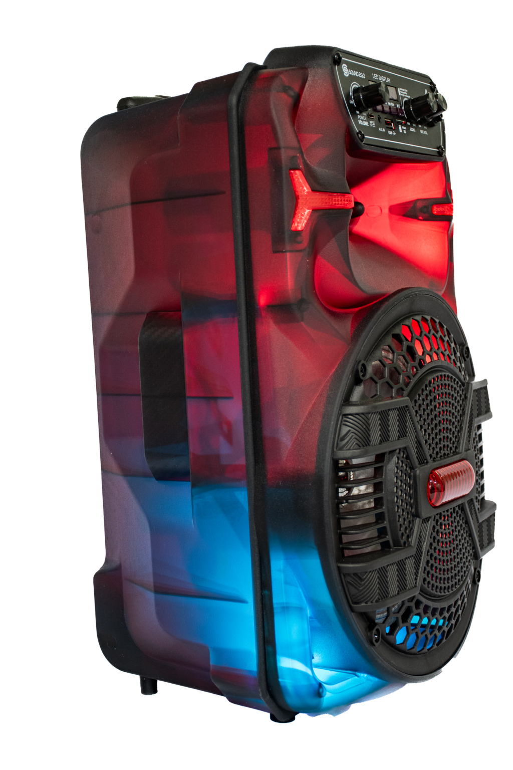Con 3000W PMPO de potencia, la Sound2Go Thunderlight es una bocina diseñada para impresionar tanto por su sonido como por su estilo. Ofrece hasta 6 horas de reproducción continua, perfecta para reuniones, fiestas o uso diario.