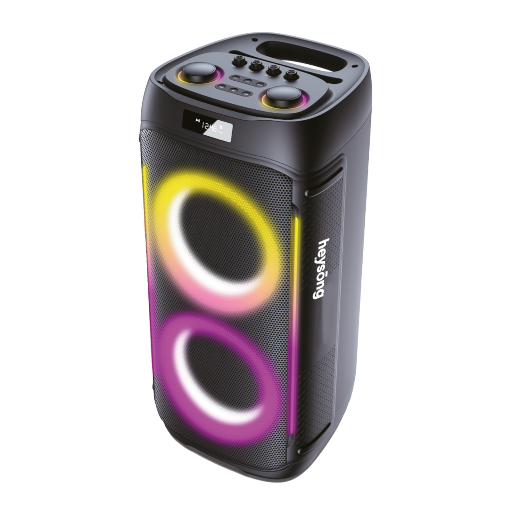 La Heysong Partybox Urban es la bocina de gran tamaño ideal para llenar cualquier espacio con un sonido potente y envolvente. Diseñada para fiestas y eventos, cuenta con graves profundos, luces LED dinámicas y conectividad Bluetooth avanzada. Su diseño resistente al agua y batería de larga duración la hacen perfecta para interiores y exteriores. ¡Haz que cada celebración sea inolvidable con la Heysong Partybox Urban!